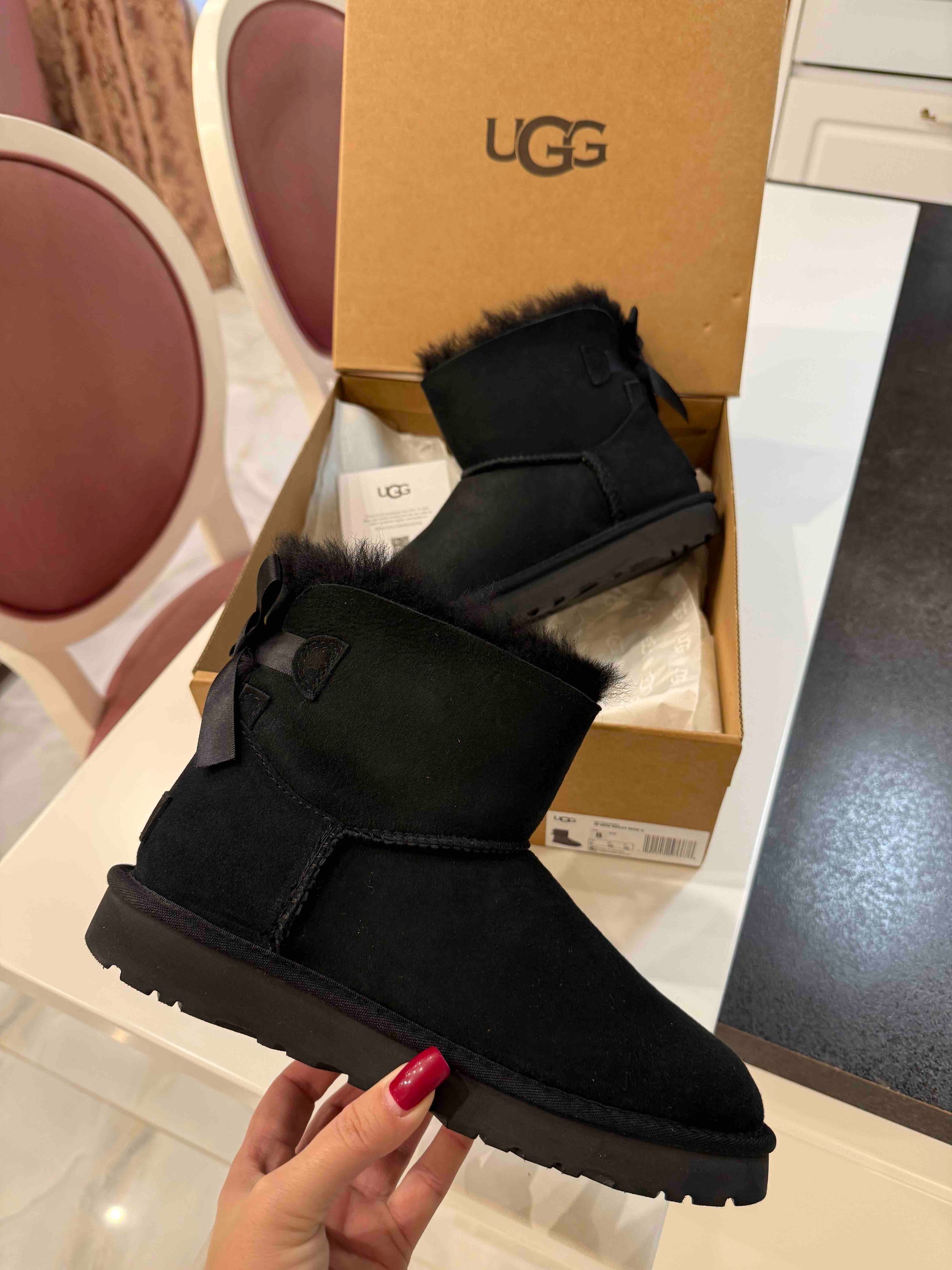 Crne UGG čizmice sa mašnicom